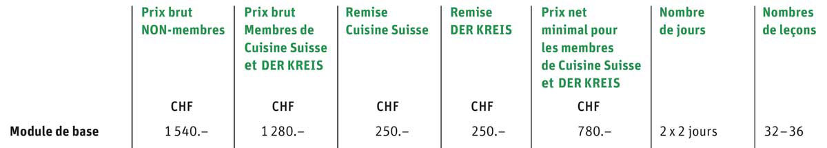 Les entreprises membres de Cuisine Suisse et DER KREIS qui investissent dans la formation continue de leurs collaborateurs bénéficient d’une réduction de prix et d’un remboursement par participant, quel que soit le nombre de collaborateurs envoyés en formation continue.